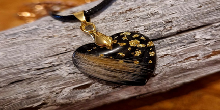 Dafür arbeite ich Schnurrhaare, Fellsträhnen, Schweif- oder Mähnenhaar, Krallen, Zähne, Asche, Muttermilch, getrocknete Nabelschnur, Blüten (z.B. vom Brautstrauß) o.Ä. professionell und fachgerecht in Deinen Schmuck ein. Auch Muttermilchschmuck ist möglich.