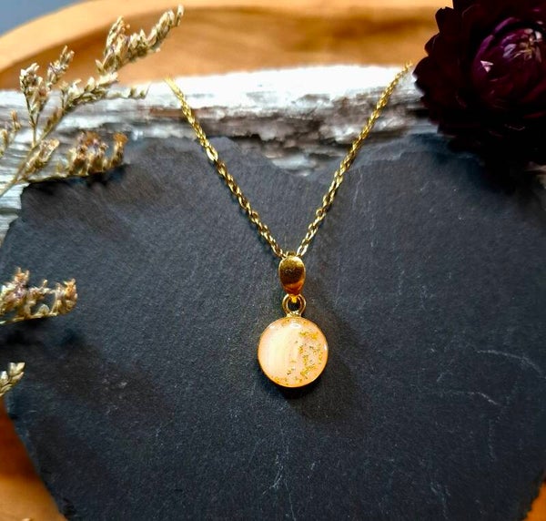 Rundes Medaillon aus 925er Sterlingsilber mit Tierhaar/Asche/Zähnchen usw. und Blattgold/-silber (auch als Muttermilchschmuck umsetzbar!).