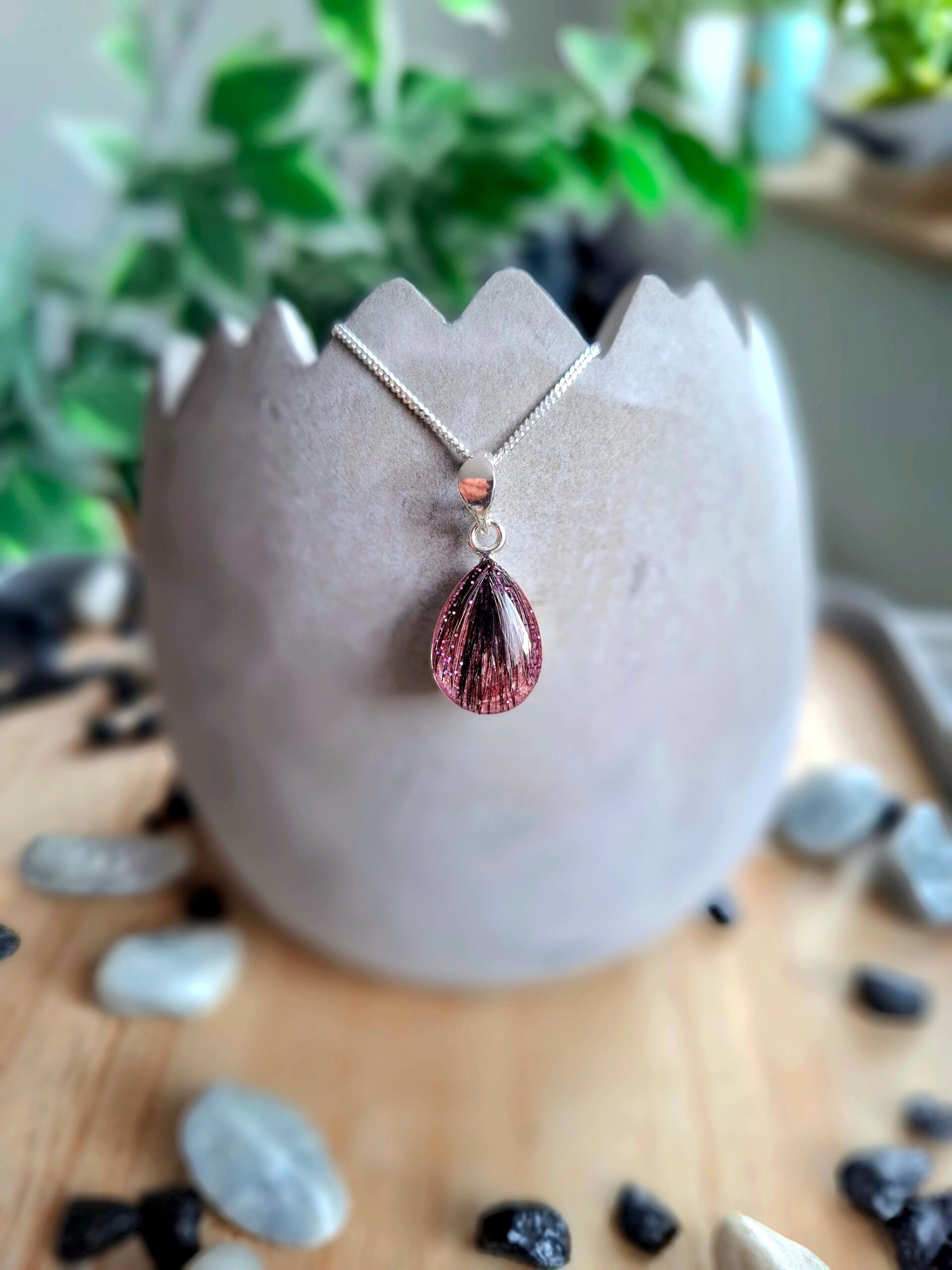 Tropfenförmiges Medaillon aus 925er Sterlingsilber mit Tierhaar/Asche/Zähnchen usw. und Blattgold/-silber (auch als Muttermilchschmuck umsetzbar!).